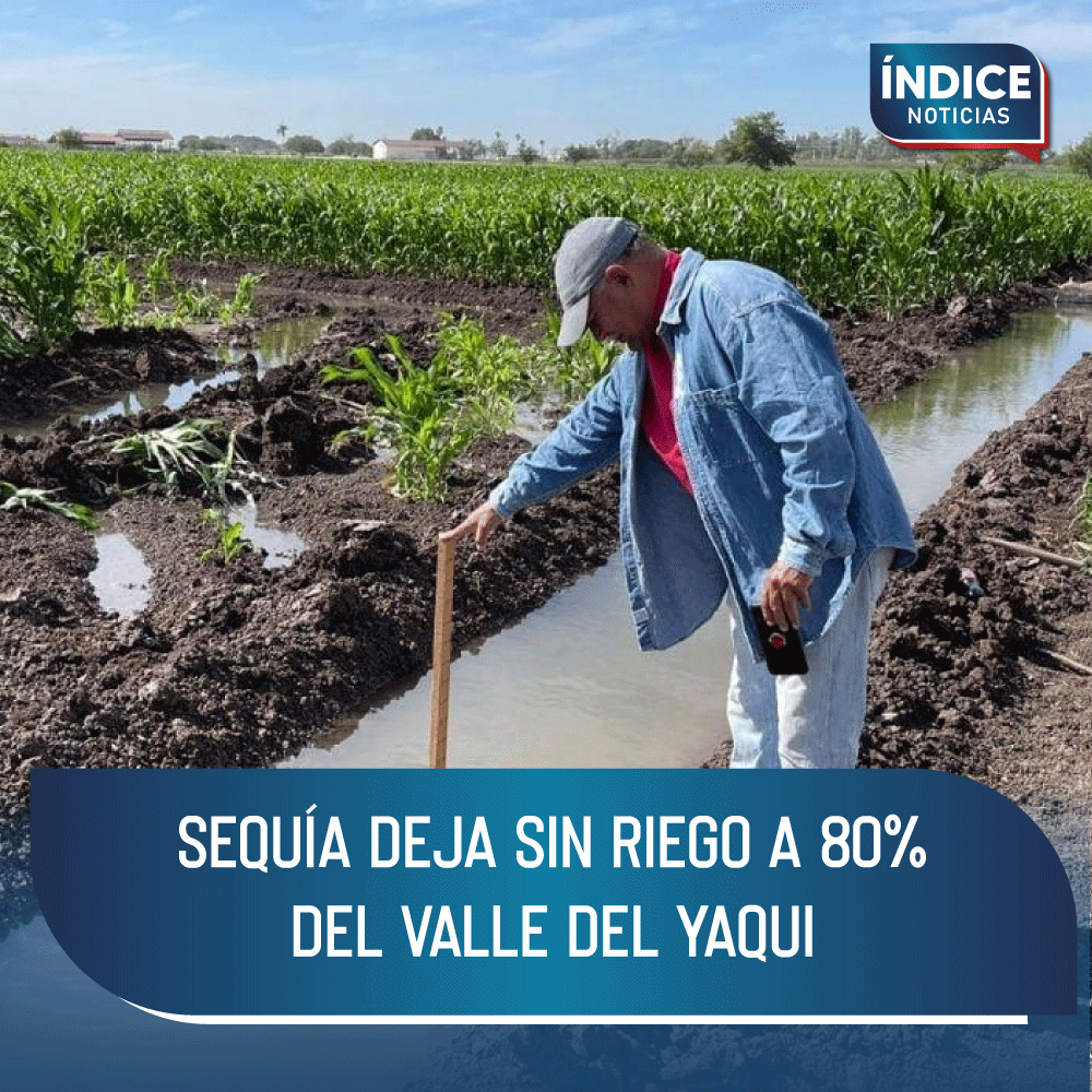 Ante la severa crisis hídrica que atraviesa Sonora, el Valle del Yaqui sólo tiene garantizado el riego para 45 mil de sus 220 mil hectáreas, lo que representa apenas el 20 por ciento de su superficie total. Esta situación crítica pone en riesgo el 80 por ciento de las tierras de cultivo, con graves consecuencias para la producción agrícola y la economía regional.