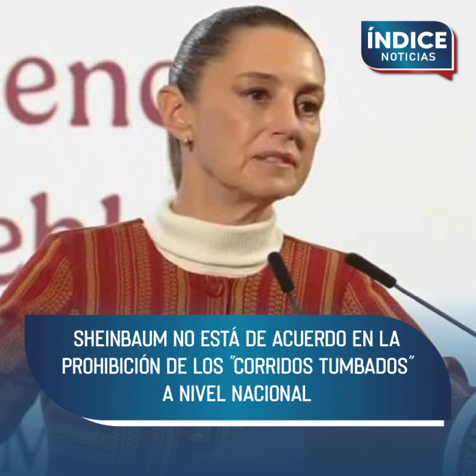 «No estoy de acuerdo en prohibir. Estoy de acuerdo en la concientización, en la educación, en abrir nuevas formas de corridos tumbados que no tengan nada que ver con enaltecer la violencia, las drogas, la discriminación a las mujeres; es muy difícil una actividad musical prohibirla», dijo la mandataria.