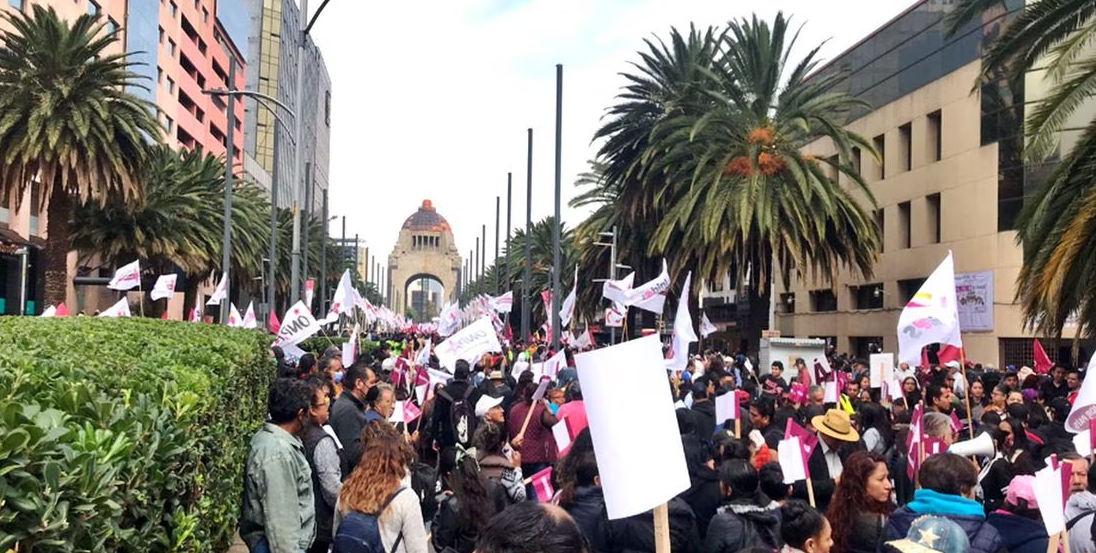 Al corte de las 10:30 de la mañana la Plaza de la República se encuentra totalmente llena, por lo que elementos de la Secretaría de Seguridad Ciudadana han desplegado un intenso ópera para desplegar a las personas a las calles aledañas.