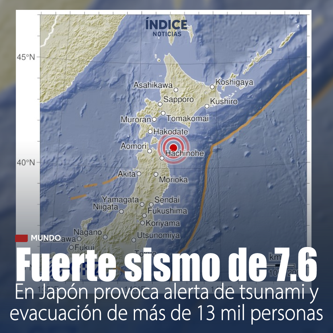 Un terremoto de magnitud 7.6 sacudió la noche de este lunes 8 de diciembre el norte de Japón, encendiendo inmediatamente las alarmas del país y activando una alerta de tsunami de hasta 3 metros de altura.