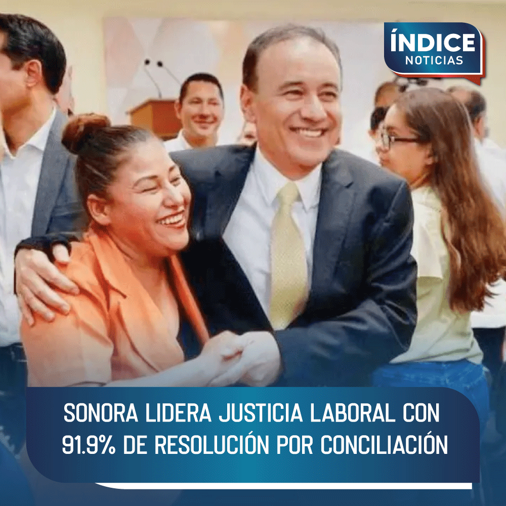 Con una tasa récord del 91.9 por ciento en resolución de conflictos laborales mediante la conciliación, Sonora se consolida como el estado número uno en justicia laboral, derivado de la visión estratégica y el compromiso del gobernador Alfonso Durazo Montaño.