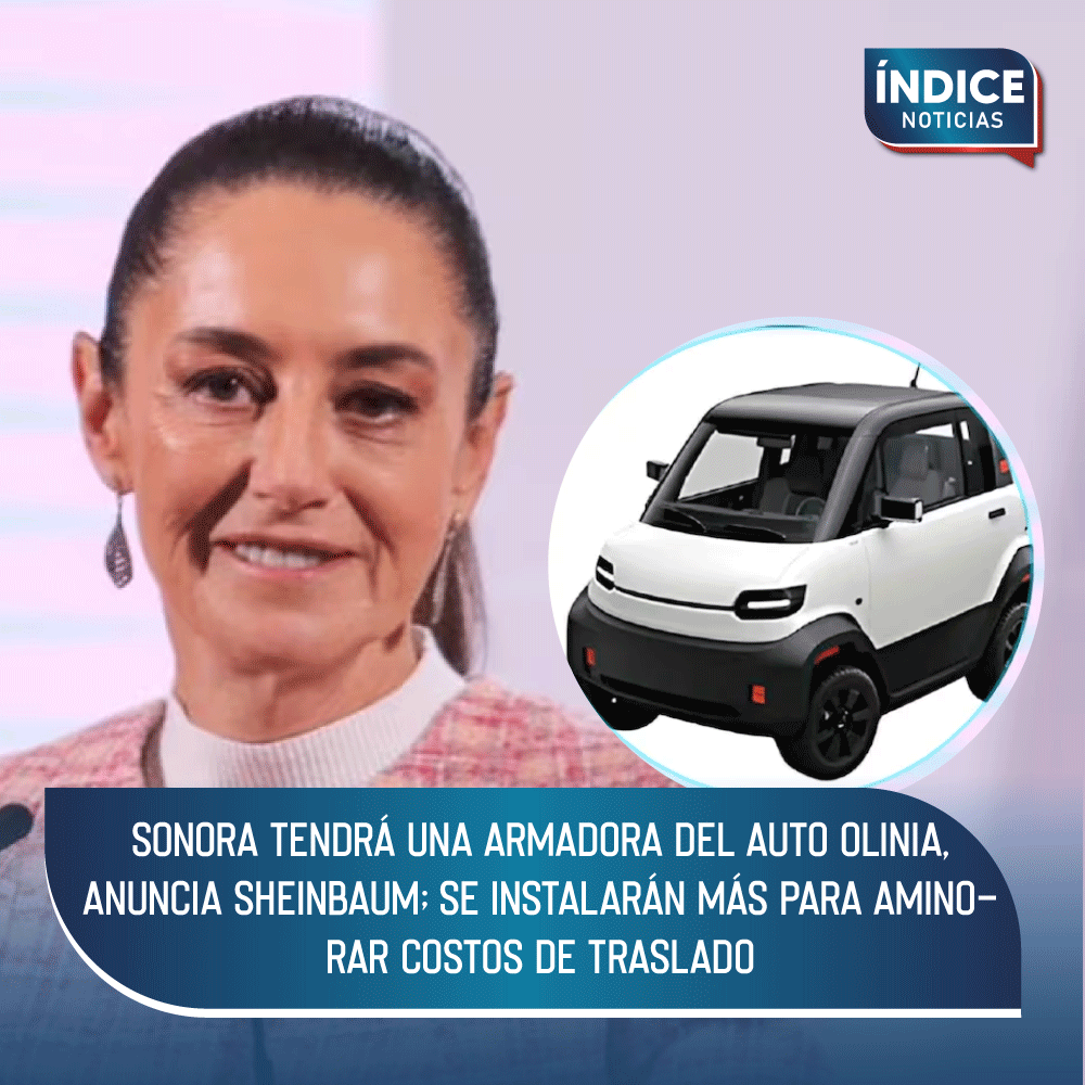 Una de las armadoras del auto eléctrico Olinia, proyecto del Gobierno Federal, estará en Sonora, anunció la presidenta Claudia Sheinbaum.