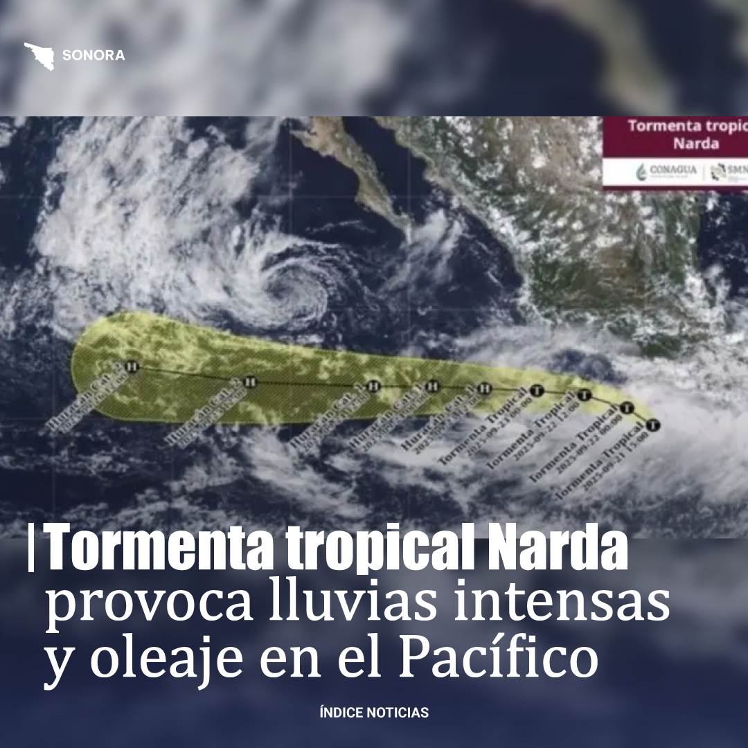 La tormenta tropical Narda continuará desplazándose en el Pacífico durante las próximas horas. Autoridades mantienen vigilancia permanente sobre su trayectoria para emitir alertas oportunas a la población de las zonas costeras.